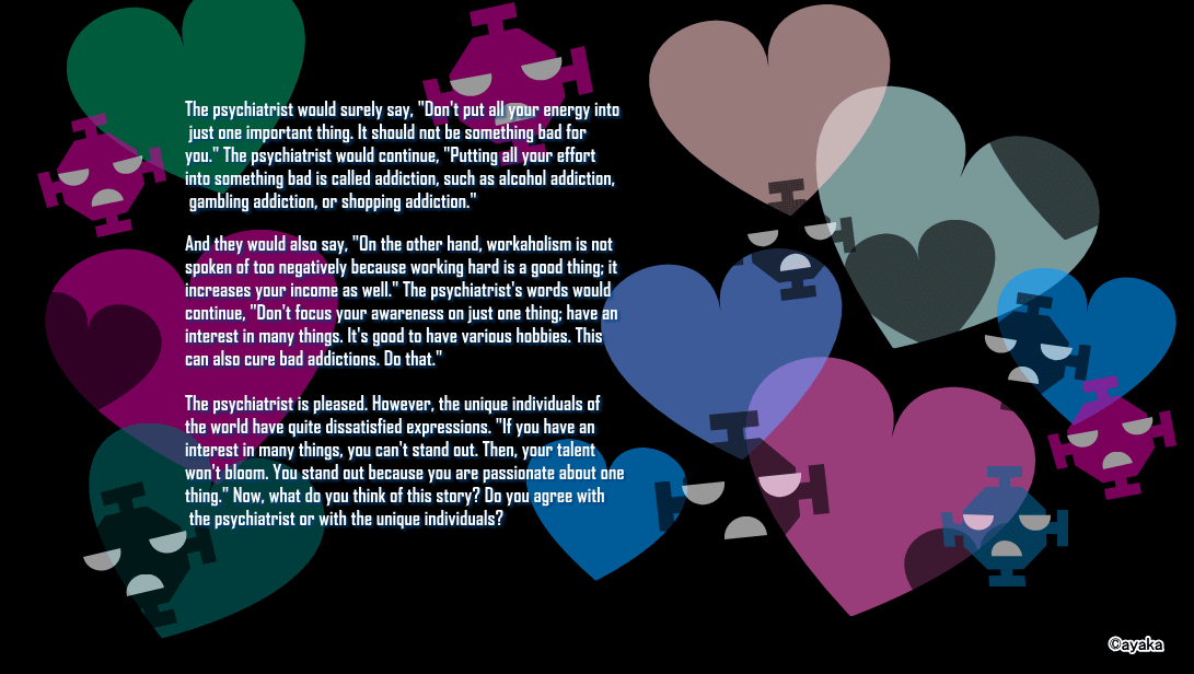 The psychiatrist would continue, "Putting all your effort into something