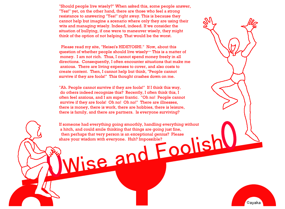 That would be the worst. Please read my site, "Heisei's HIDEYOSHI." Now, about this question of whether people should live wisely— This