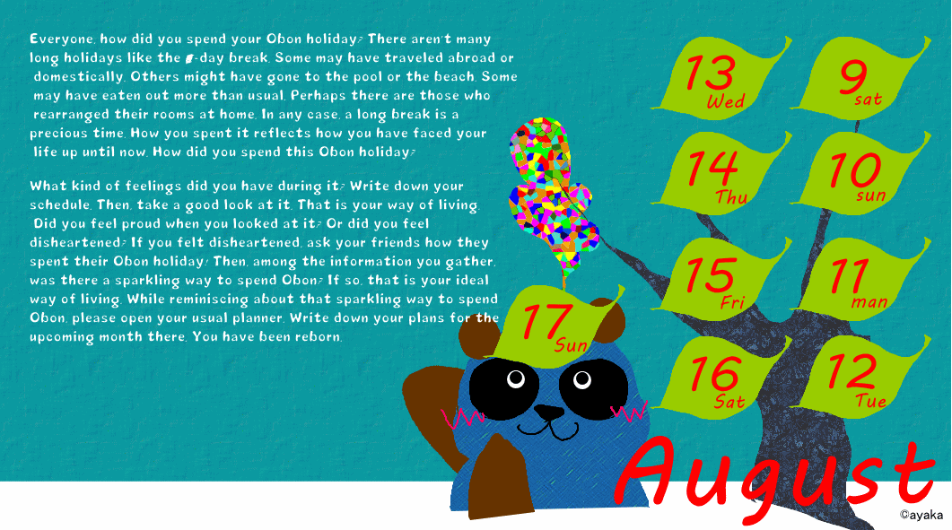 you felt disheartened, ask your friends how they spent their Obon holiday!