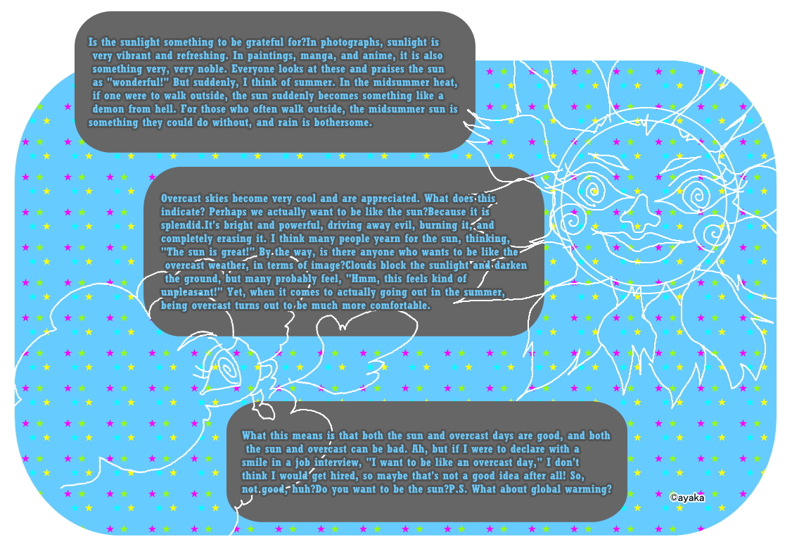 "The sun is great!" By the way, is there anyone who wants to be like the