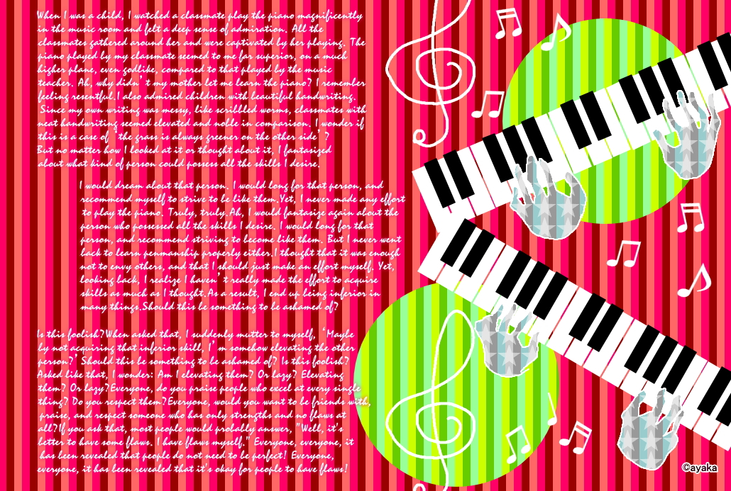 teacher. Ah, why didn’t my mother let me learn the piano? I remember