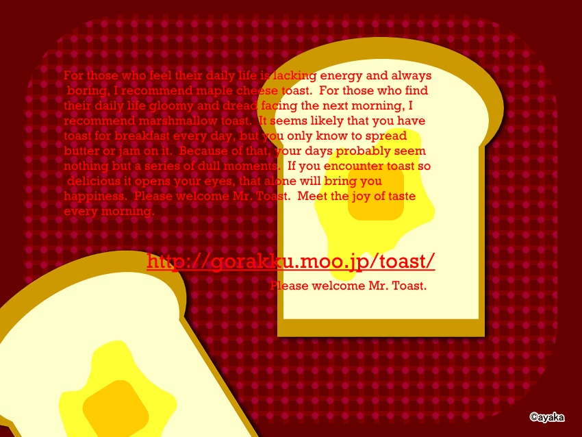 happiness. Please welcome Mr. Toast. Meet the joy of taste