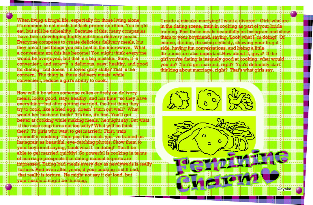 course, dieting, dressing stylishly, showing your frugal