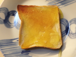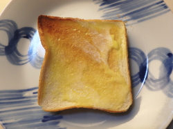 お好で焼き上げたあつあつのトーストに、バターを塗ります。