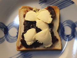 ※アイスとあんこが合わないわけ、ナイナイ。スーパーカップの美味しさと甘さが、あんこと混ざり合って、こいつは美味すぎるトーストです。