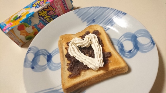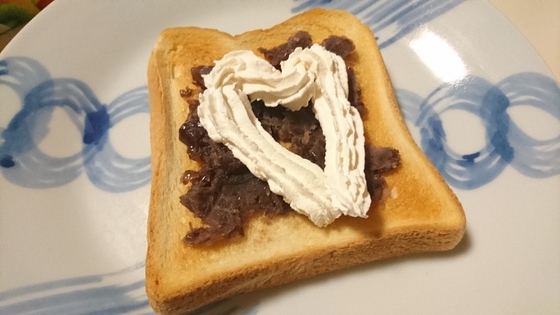 トーストした食パンにあんこを塗り、上からホイップクリームを飾るだけ。