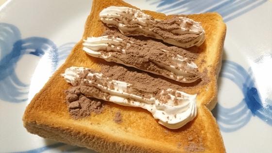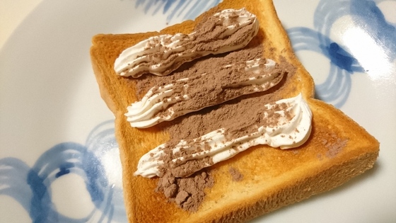 トーストした食パンに生クリームを飾って上からココアをふりかけてください。