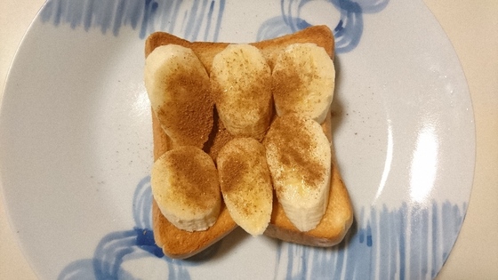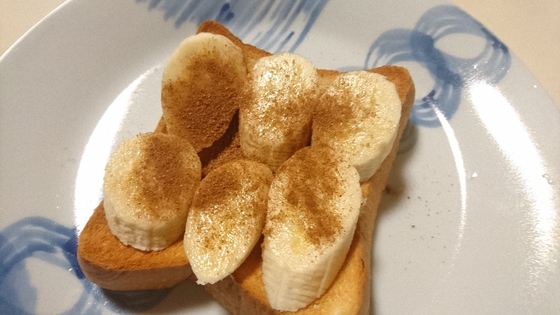 ※バナナにふりかけられたシナモンが独特の風味で、おかしみたいなトーストです。