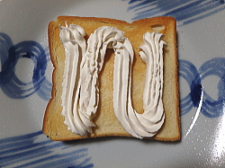 トーストした食パンにたっぷりのホイップを飾ってください。
