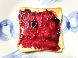 トーストした食パンにブルーベリージャムを塗ってください。