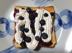 ※朝からなんとリッチ。リッチすぎるオレオトースト見参。ブルーベリージャムとブルーベリー果実がいい仕事してます。