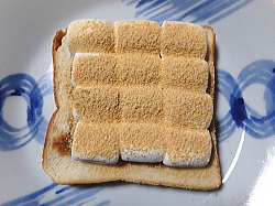 トーストが焼けたら、上から茶こしできなこをかけてください。