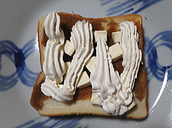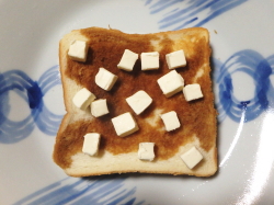 ※とうとうティラミストーストに到達しました。お味は角切りのクリームチーズとホイップが混ざり合っていないので、おおざっぱなティラミス味です。