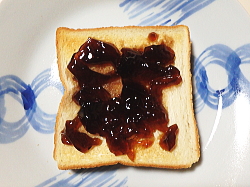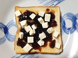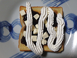 トーストした食パンの上にコーヒーゼリーを盛り付けてください。