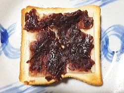 トーストした餅トーストにあんこをたっぷり塗り、いちごを並べて出来上がり。