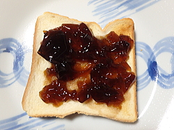 トーストした食パンにコーヒーゼリーを盛り付けてください。