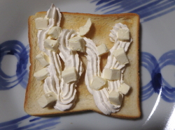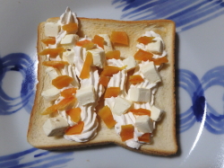 129.ダイス・チーズトースト。マンゴー・ホイップ