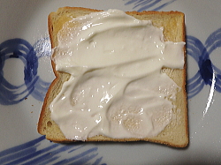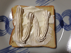 トーストした食パンにヨーグルトを塗ったら、上からホイップクリームを絞ってください。