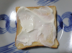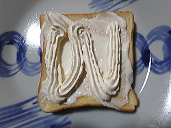 トーストした食パンにヨーグルトを塗ったら、上からホイップを絞ってください。