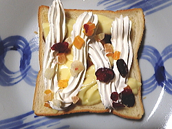 ※多彩なビッツの果実が楽しいトーストになりました。トーストとプリンはよく合う。