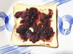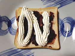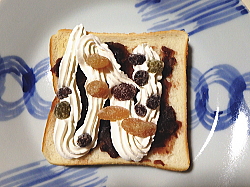 トーストした食パンに、あんこをたっぷりと塗ってください。