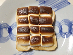 その上にマシュマロを12個並べたら、5分トーストしてください。