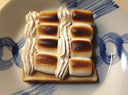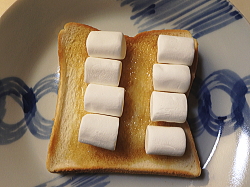 5〜6分トーストして、マシュマロに焦げ目をつけてください。