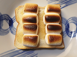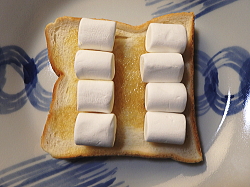 その上にマシュマロを隙間を作って並べたら、5分トーストしてください。