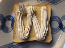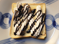 トーストした食パンにホイップクリームを絞ってください。