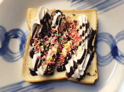※ホイップとカラースプレーの独自の風味が、絶品です。美味しいトーストの探索だぁぁ。