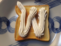 トーストした食パンにホイップクリームを絞ってください。