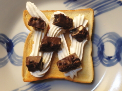 ※うん、これはブラックサンダーを食べている味。どうだろ、トーストにする意味は有ったのだろうか。そうだね、ブラックサンダーを食べれば、それでいいんだよね。でも、このトーストは、とびっきり美味しい味です。ホイップがいい仕事してます。