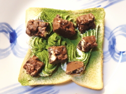※抹茶とブラックサンダー。なんて美味しいんだろ。ホイップとブラックサンダー。なんて美味しいんだろ。美味しいの相乗で、うますぎるトーストでけた!