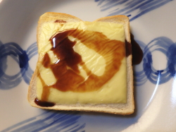※和の食材、黒蜜と、西洋の食材、チーズ。和と洋のコラボがこんなにうまいとは。簡単絶品トーストの出来上がり。