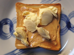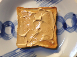 トーストした食パンに、ピーナッツバターを塗ってください。