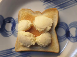 トーストした食パンにアイスを盛り付けてください。