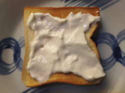トーストした食パンにヨーグルトを塗ってください。