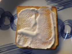 トーストした食パンに、ヨーグルトを塗ってください。
