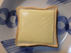 食パンに大きいとろけるスライスチーズを乗せて、5分前後トーストしてください。