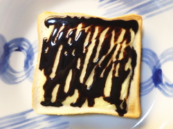 ※食べる直前まで、私は、いったいゲテモノを作っているのだろうか?とずうっと一抹の不安を抱えてました。が、食べたら、絶品! こいつは進化形の悪魔のトーストだ!それくらいハマりそうな甘じょっぱさを演出。美味しいのデケた^^。