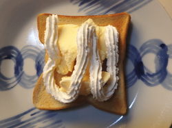 トーストした食パンにアイスクリームを盛り付けてください。