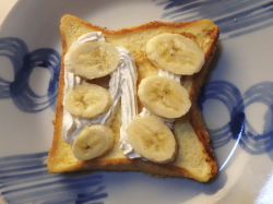 | ※シナモンとバナナ、いぃよねー。うまいわ、これ、うますぎるわ、じゅわーしっとりのフレンチトーストにバナナ。うますぎるトーストデケタ。 |