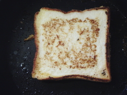 - フライパンにバターを塗り、2のパンをきれいに焼き色が付くまで両面焼き上げます。