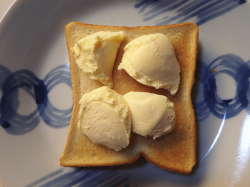 トーストした食パンにアイスクリームを盛り付けてください。