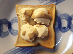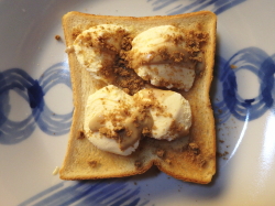 ※黒糖と練りごまでアイスの品格が爆上げ、こいつは極上スイーツトーストなり。夏だけでなく冬にも楽しめそうな、そんな予感。