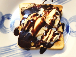 ※マーマレードとチョコレートの甘さと酸味と苦さのコラボがたまらないトーストに仕上がりました。こいつはハマる!