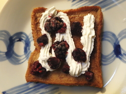 | ※ココアのフレンチトーストにベリーがよく合う。そこにチョコレートソースをかけて、爆上げフレンチの出来上がりダイ。 |