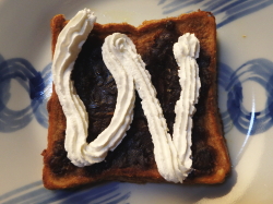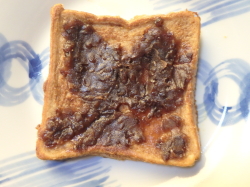 - フレンチトーストを器に盛り付けたら、上からあんこを塗り付けてください。