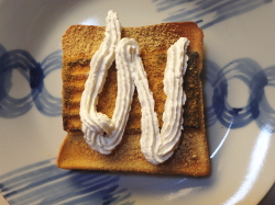 ホワイトチョコレートに焦げ目がつくまで焼いてください。(写真は焼きすぎ・汗)