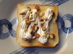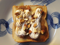 ※ナッツは母からもらいました。いつも家に遊びに来た時においていってくれます。お味はデリシャス。今回はナッツのカットの数を減らし、ナッツの食感が楽しめるトーストになりました。